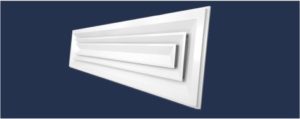 Extruded aluminium rectangle ceiling diffuser with four way throw, and extruded aluminium core which is spring loaded and removable. Different construction available for flush type and tegular ceilings. Collar damper available as accessory for supply air.