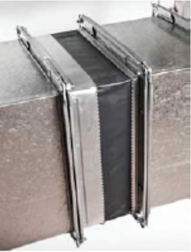 Flexible Duct Connectors are used to eliminate duct system noises and vibrations for industrial and commercial applications. The Basic use is to isolate the vibration and noises to the source with an air tight flexible joint consisting of a fabric fastened to steel metal on both sides. The flexible connector is fixed between the A/C equipment or fan and the ductwork. Various cloth types, cloth widths and steel widths are available in order to meet most of the installation requirements at job sites