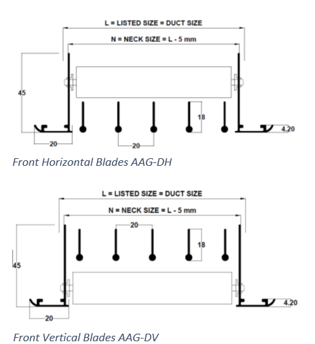- Deflection blades can be adjusted manually and individually, to provide air deflection in both horizontal and vertical planes.